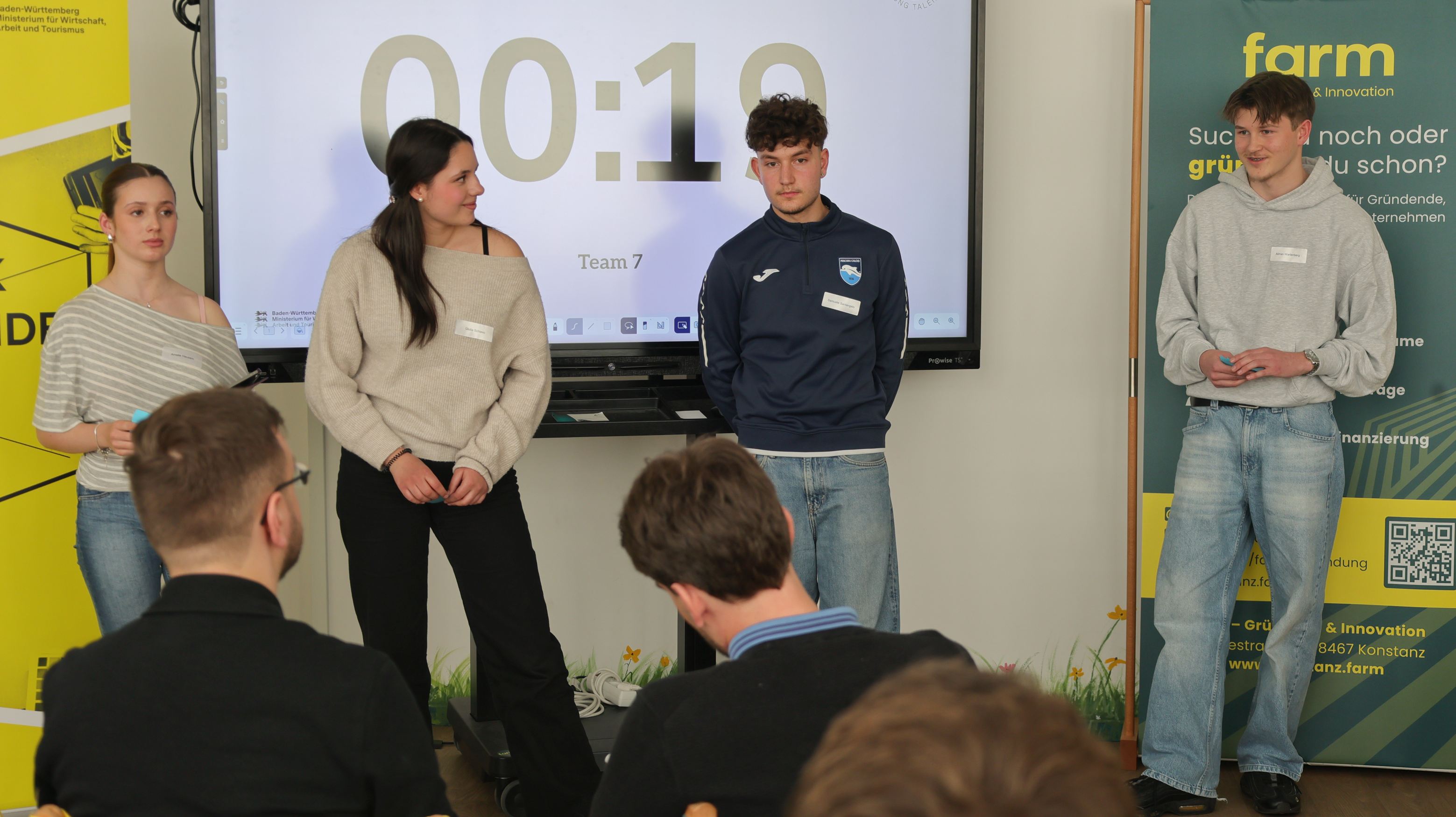 Der Leistungskurs Wirtschaft der KS1 des Friedrich-Wöhler-Gymnasiums Singen nahm erfolgreich am Wettbewerb "StartUp BW Innovation Workshop & Pitch" im Gründungs- und Innovationszentrum "Die Farm" in Konstanz teil. Insgesamt drei Teams präsentierten ihre Geschäftsideen vor einer dreiköpfigen Fachjury – mit großem Erfolg: Zwei der drei Teams konnten die Jury besonders überzeugen.
